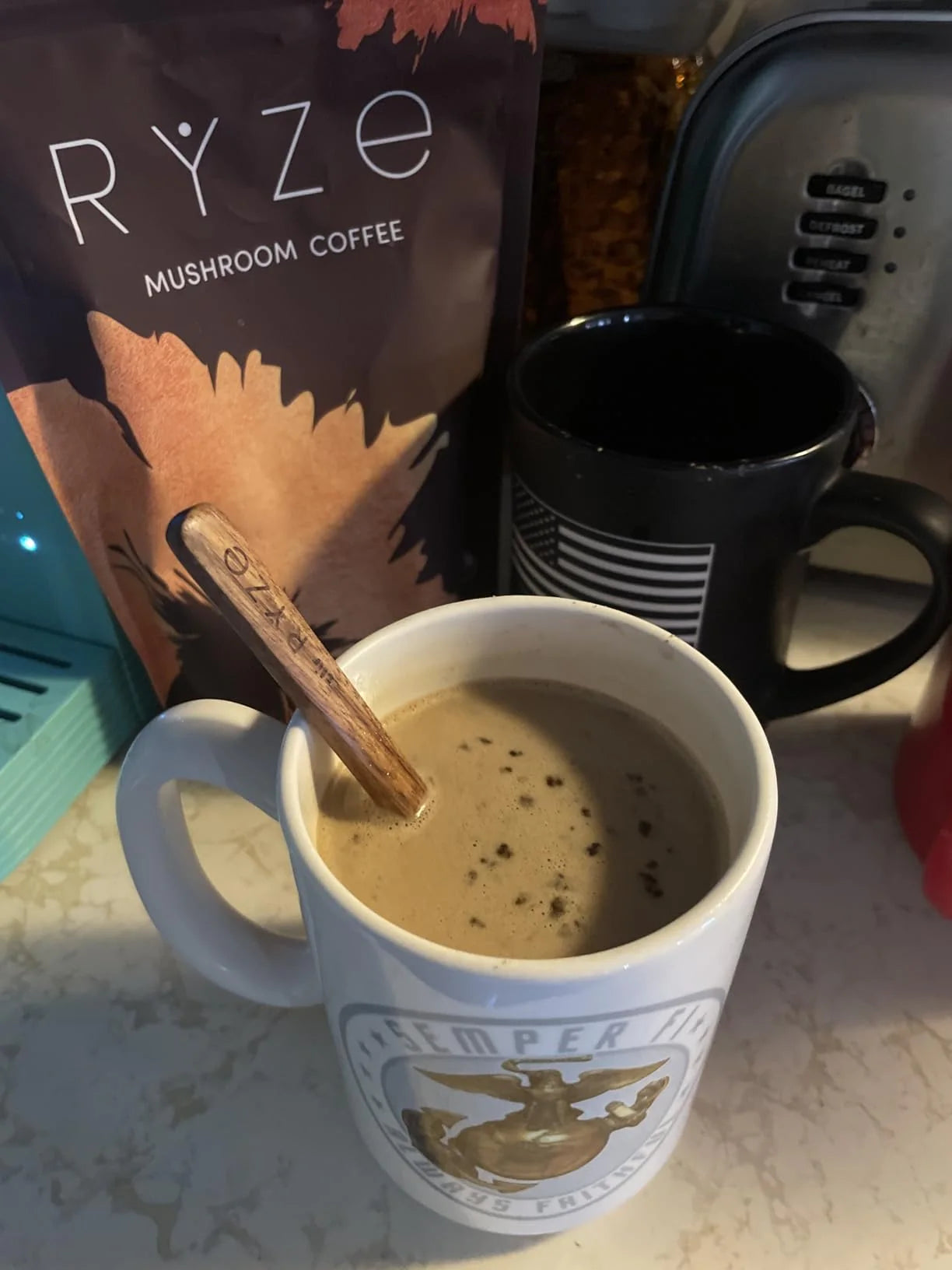Standard coffee only stimulates temporarily. RYZE combines energy with health benefits that last: